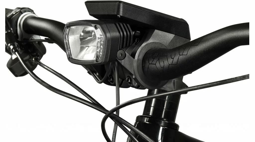 Éclairage de vélo approuvé par StVZO avec des feux de route et des feux de croisement jusqu’à 1800 lumens et des feux de jour distinctifs, y compris une pince de télécommande.